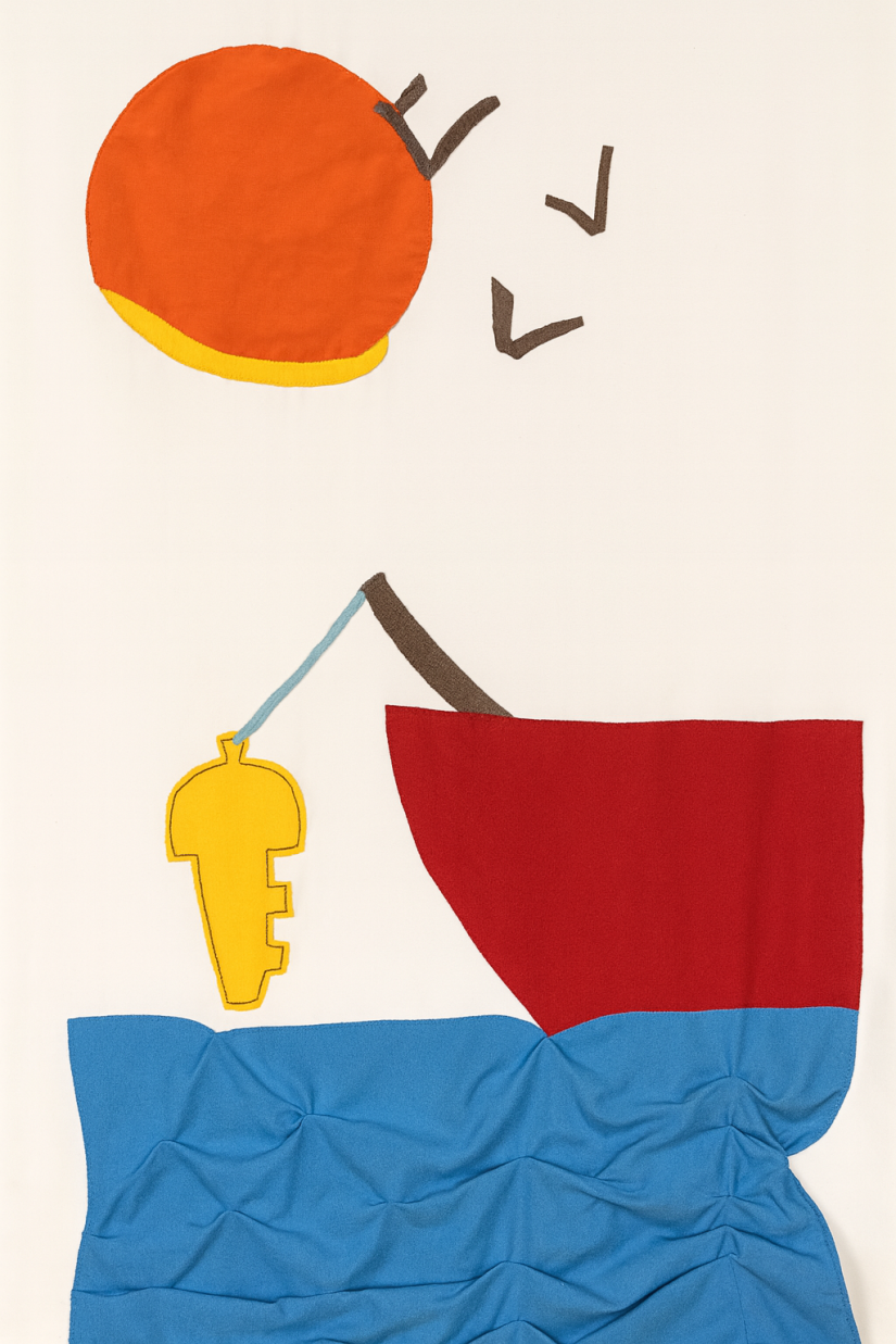 "Een sleutel wordt gevist uit de oceaan. Rust vinden op het water.
