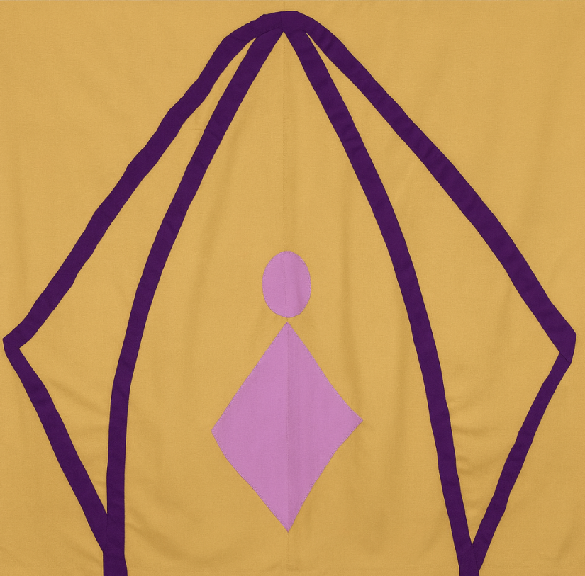 Een ontwerp door deelnemers van de Trefdag Faire gemeente in Leuven. De vlag werd genaaid door Naaiatelier SAAMO in Willebroek.