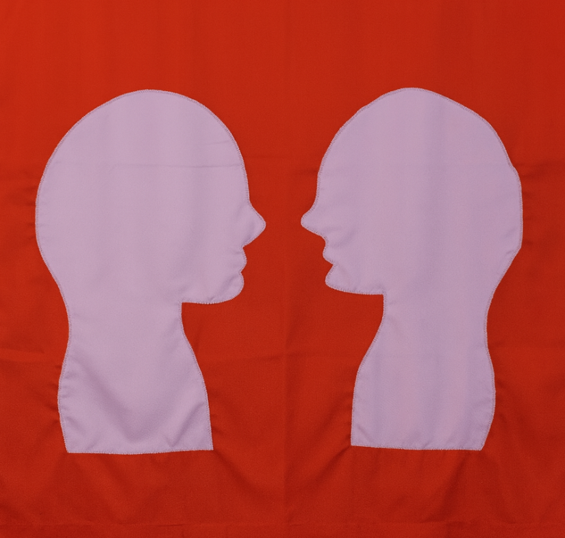 Een ontwerp door Pax Christi, geïnspireerd door het ontwerp van de vlag "Praten, niet vechten". De vlag werd genaaid door AMAi Mechelen.