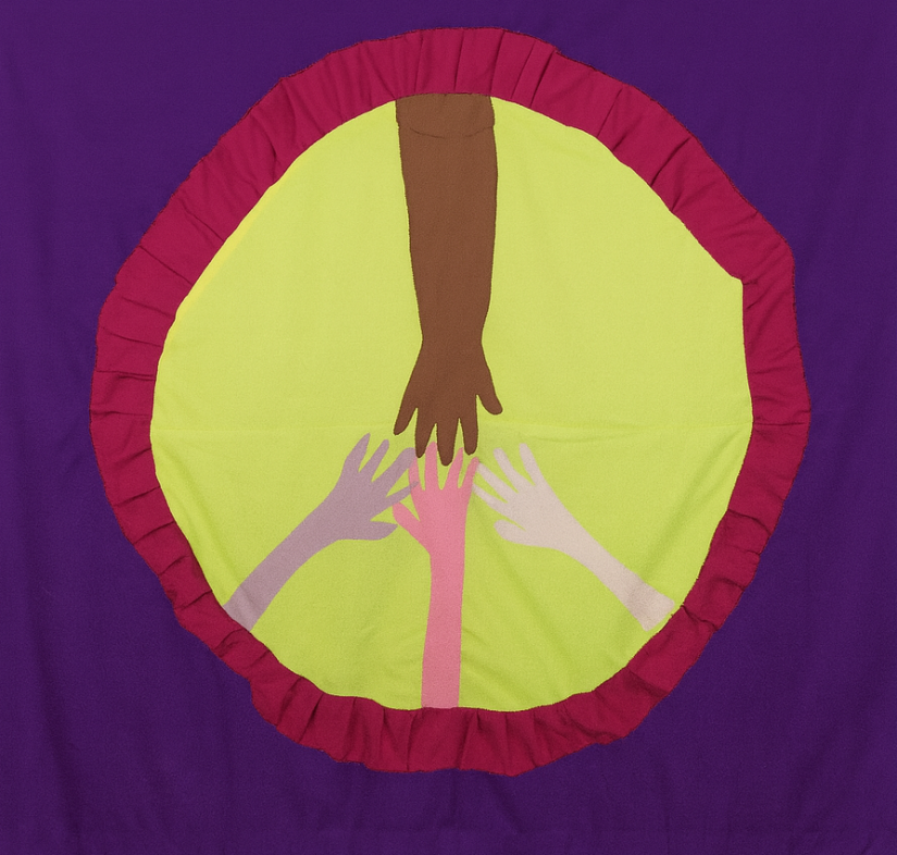 Niet met wapens, maar door handen in elkaar te slaan en samen, over grenzen heen, te bouwen aan een wereld van verbondenheid en vertrouwen.