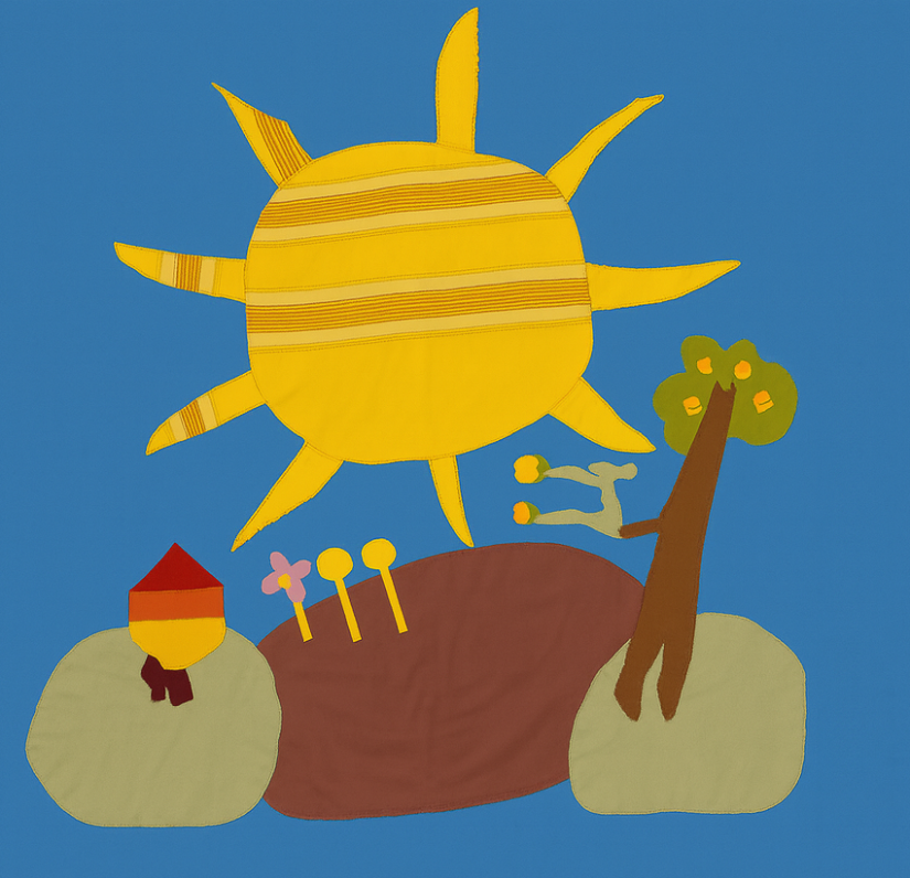 De zon staat hier voor warmte, leven en kracht. Haar stralen raken alles aan, en brengen licht, zelfs op donkere momenten.