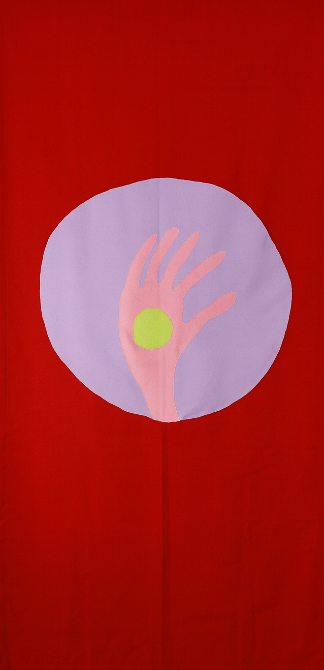 De rode kleur stelt de harde wereld voor, terwijl de groene bal in de hand iets kwetsbaars symboliseert. De hand zelf staat voor bescherming, de moed om de harde wereld onder ogen te zien.
