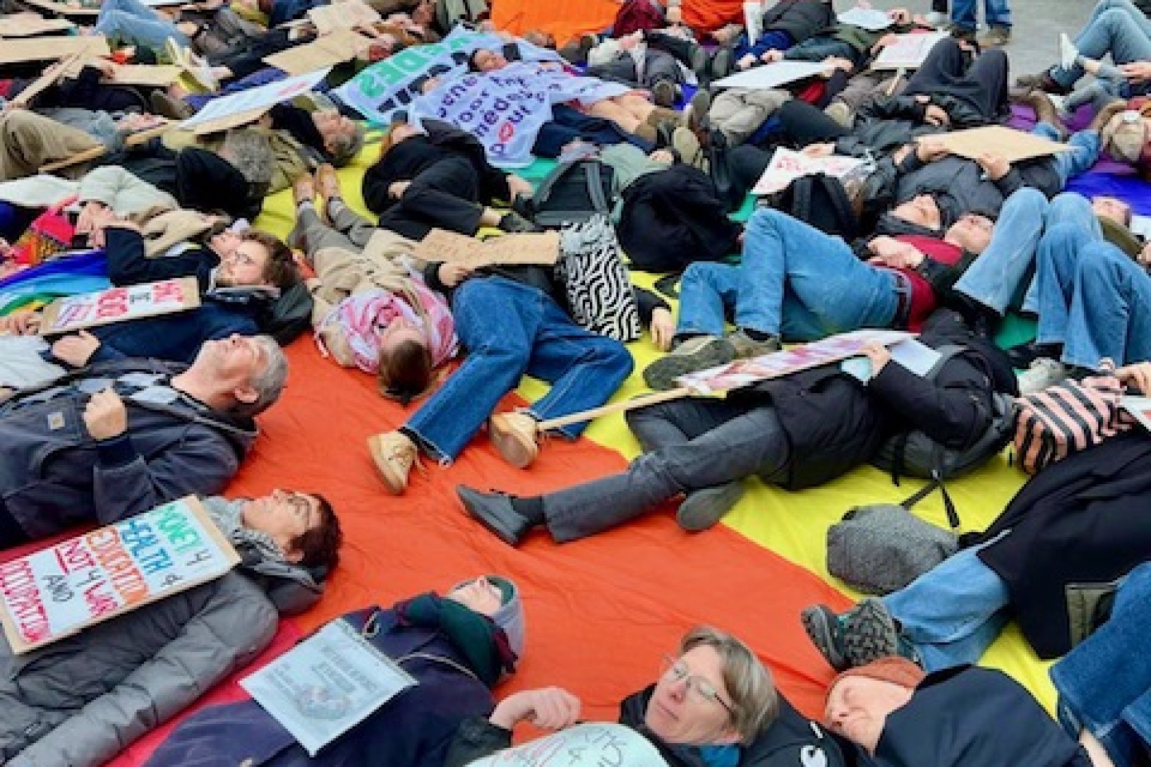Met deze Die-Inn-actie tonen we dat we het daar niet mee eens zijn. Wij willen geen toekomst vol angst, oorlog en vernietiging. Wij willen vrede, zorg voor mensen en bescherming van onze planeet.