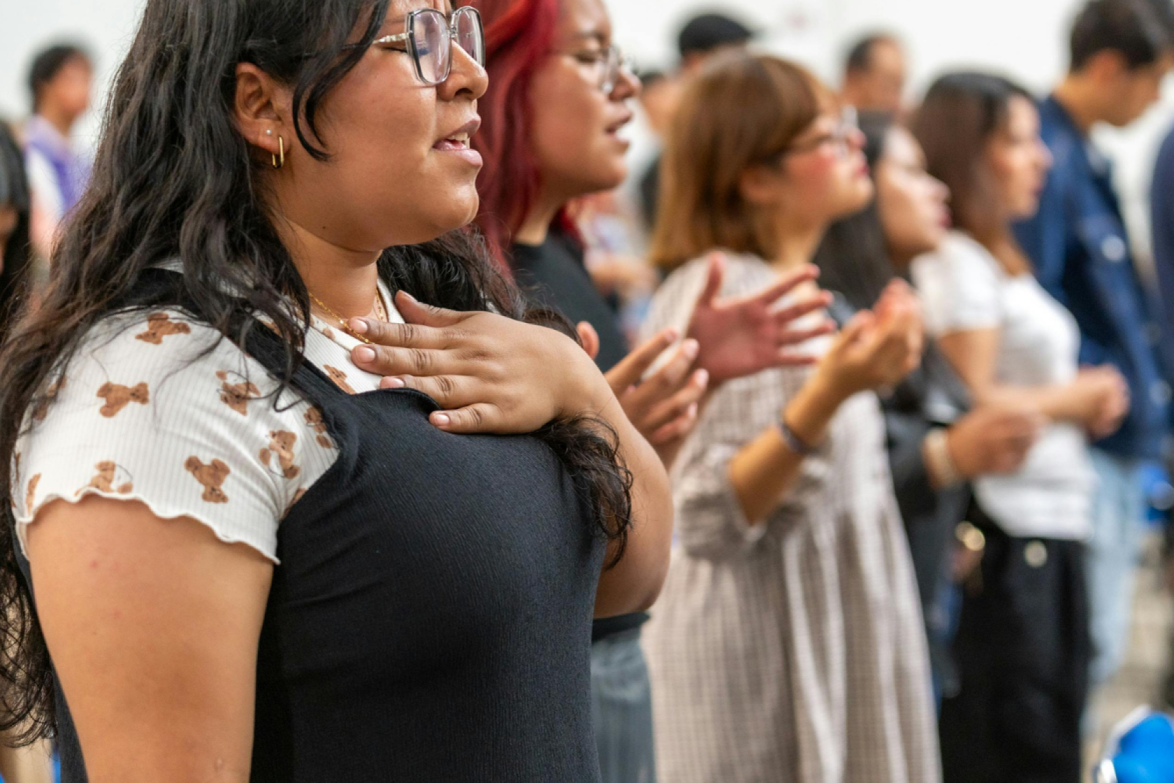 Kom mee zingen op zondag, onder begeleiding van Petra Nooyens, actief lid en dirigent bij het Mechelse acapella-koor 'Les Amis de P'.