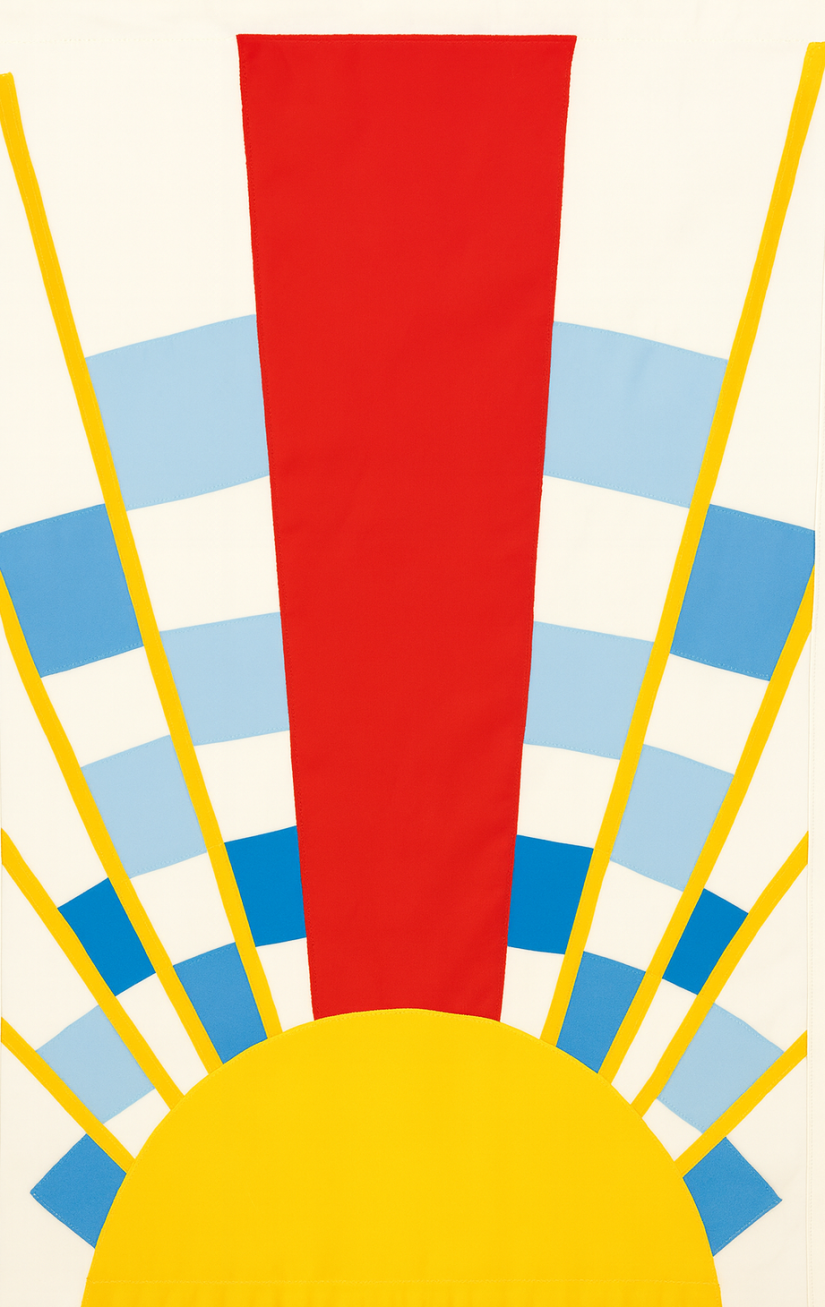 Een ontwerp door UCSIA. De vlag werd genaaid door vrijwilligers in het Oude Badhuis.