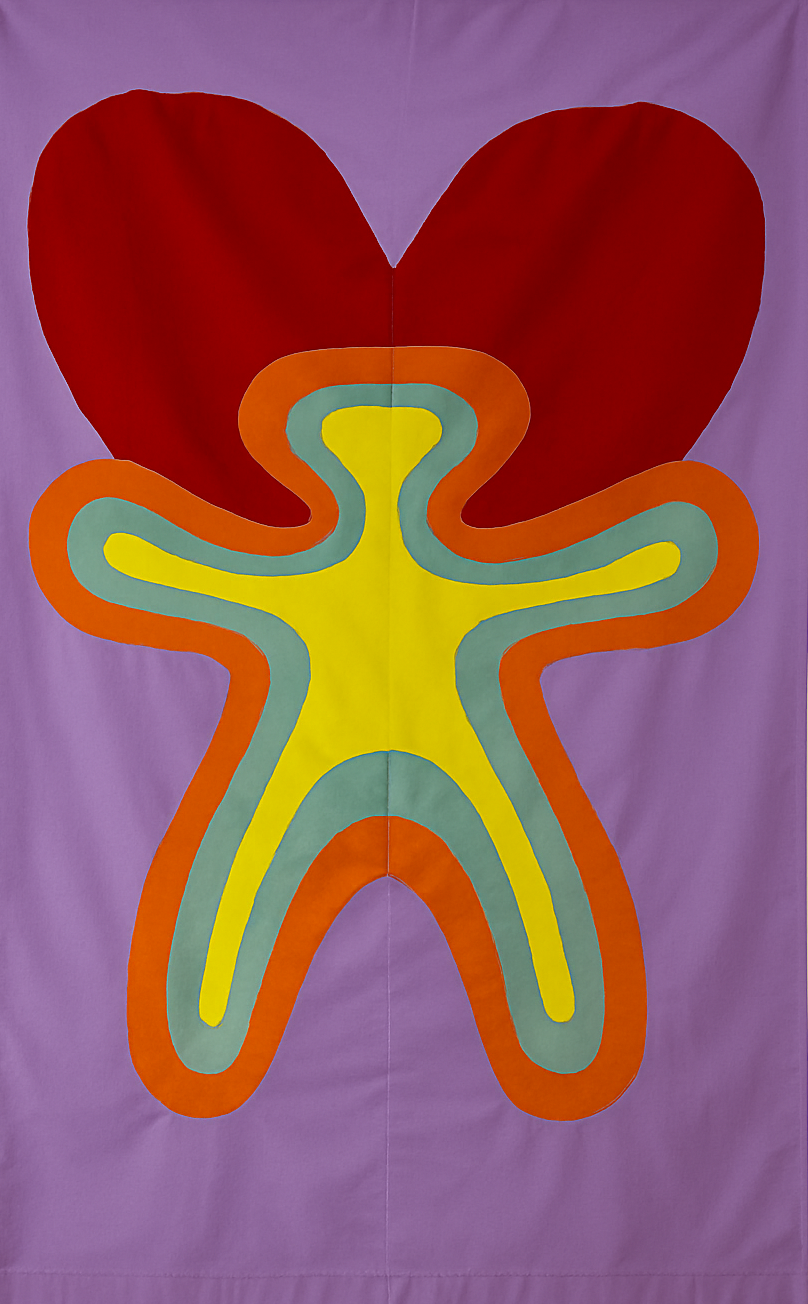 Uit een groot, rood hart, dat bijna opgaat in de achtergrond, ontstaan mensenfiguren die uit elkaar groeien. Als Russische baboesjka-poppetjes die in elkaar passen.
