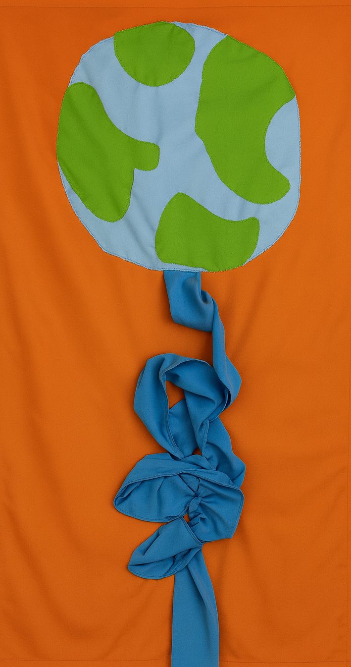 Een ontwerp door vrijwilligers van Pax Christi Vlaanderen. De vlag werd genaaid door vrijwilligers uit het Repair Café Bilzen (Goedele, Sylvia, Betsy, Alda, Sandra, Georgette, Maria, Jacqueline).