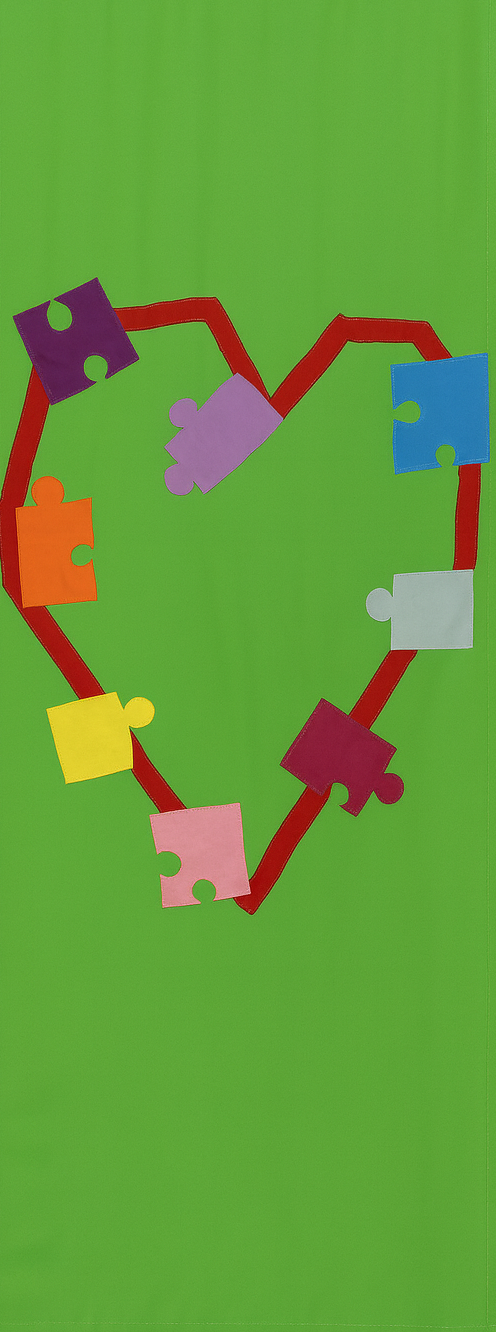 Samen vormen ze ons symbool: een hart met puzzelstukken met daarin de wereldgodsdiensten. Het kruis van het Christendom, de ster van David van het Jodendom, de maan en ster van de Islam, het om-teken van het hindoeïsme, het yin-yang-symbool van het taoïsme, Krishna, het teken van het humanisme en het dharmawiel van het boeddhisme.