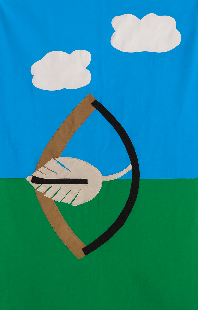 Een ontwerp door gedetineerden in het Detentiehuis Olen. De vlag werd genaaid door vrijwilligers van het Oude Badhuis.